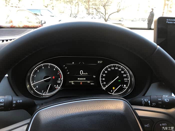 再看看车内,老婆选的是定制款内饰,黑色软包的表台,搭配灰色真皮座椅,使车内空间感更强,也更显格调,最主要符合我老婆跳动的思维!