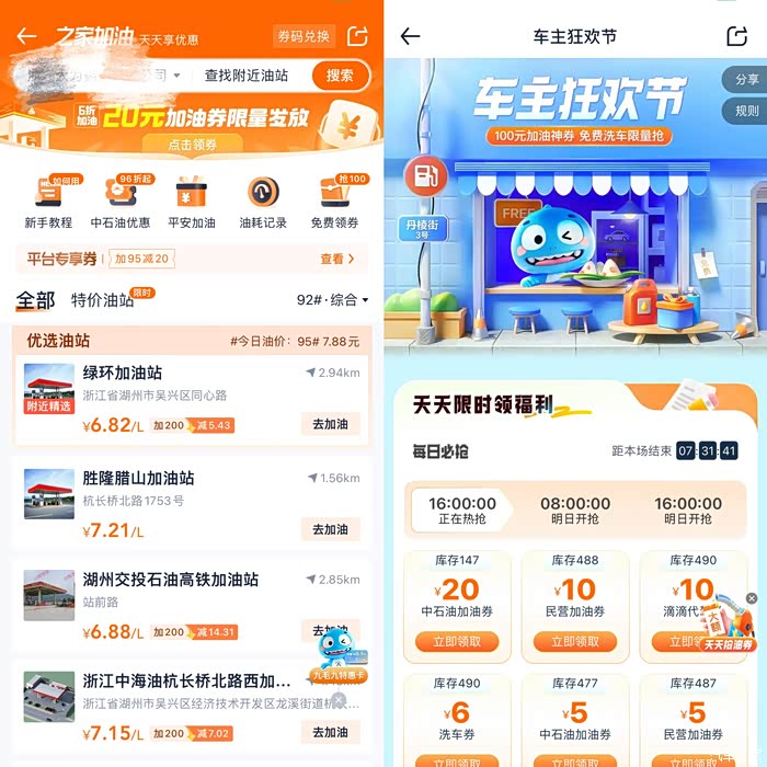 看到了吧,这么多油站都是有优惠活动的,提前在汽车之家APP领取优惠券,加油的优惠就又多了一些,日积月累之下,一年总额应该也能省不少钱呢。
