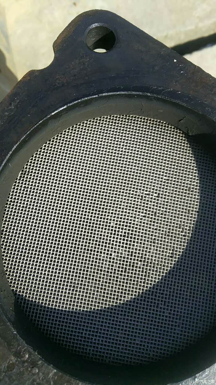 近看,有点脏,但并不是很严重,不算堵塞,加速无力的原因不在于它(其实是离合器打滑了)