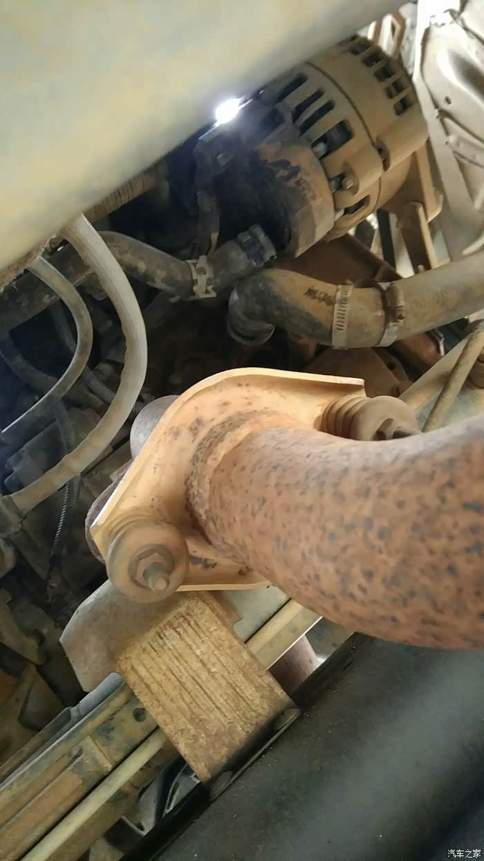 三元催化器在排气岐管下面,与排气岐管连接,拆掉4枚螺丝就可断开它们的连接