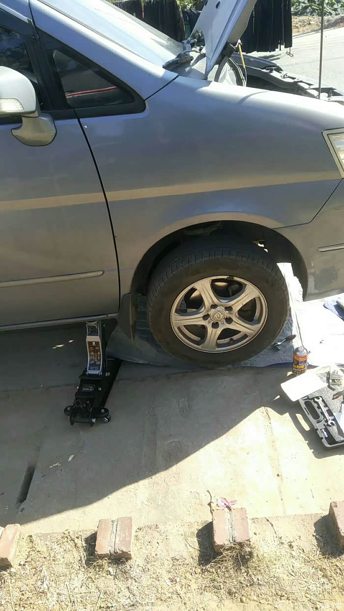 首先顶车,用2.5吨的卧式千斤顶,然后钻车底拆发动机护板