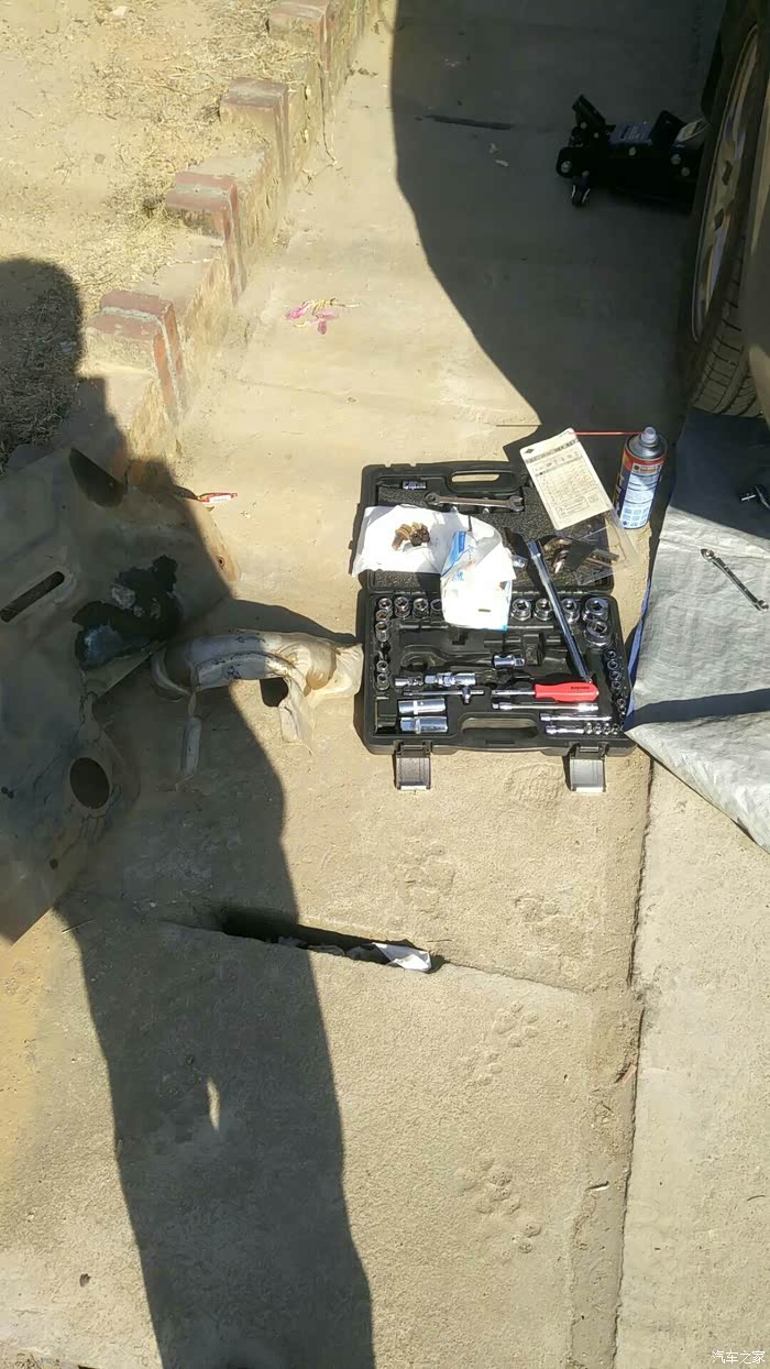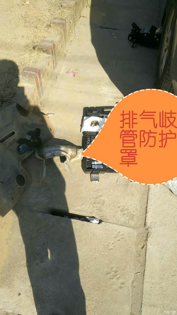 又出来打开发动机盖,拆掉排气岐管防护罩
