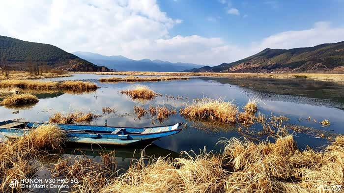 草海景色非常漂亮,淡季旅游能拍出不错的照片。旺季这草海上挤满猪槽船和游客,不知道拍出来是什么光景。