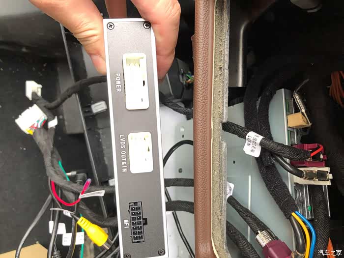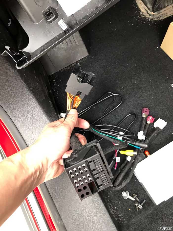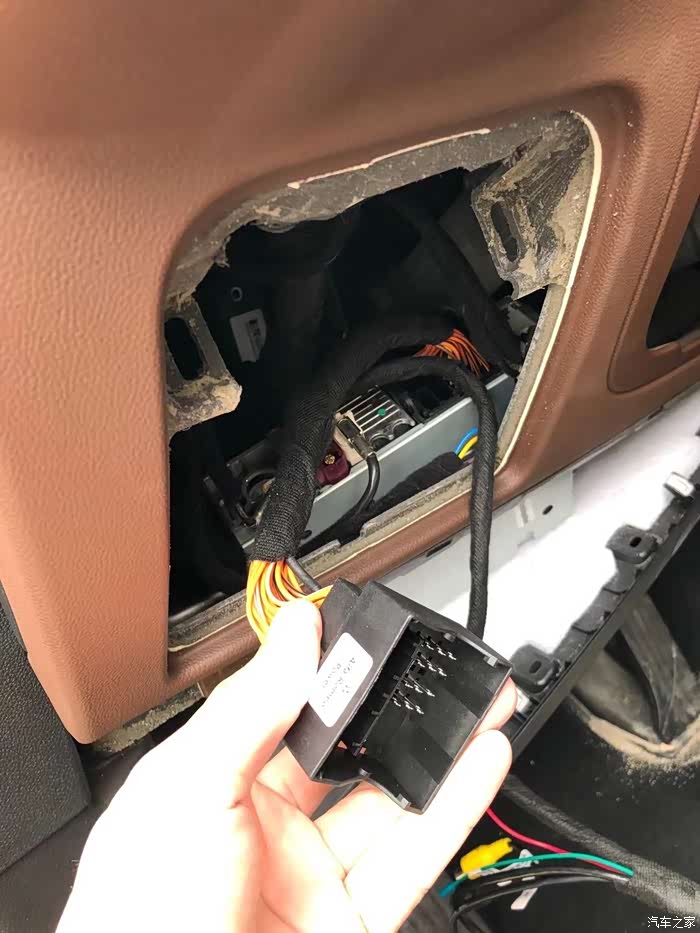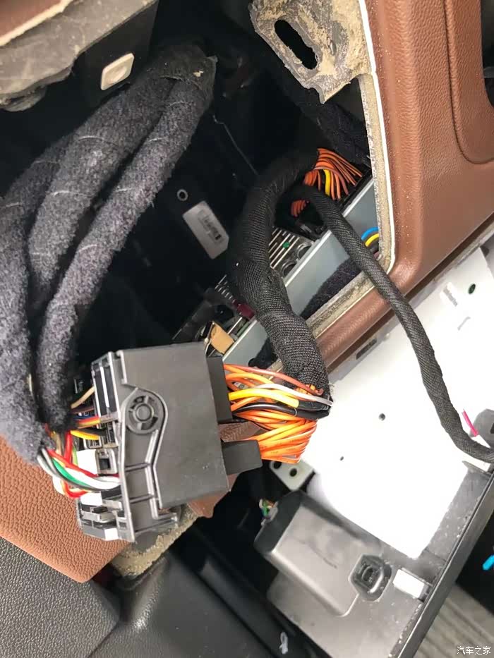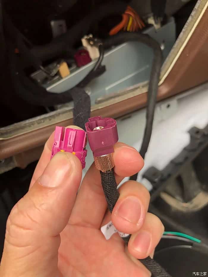 我们的线束,先把接头插的一端到车的主机上。留下另一端(如图所示),然后把从车主机上拆下来的一端***我们线束的这一端上。
