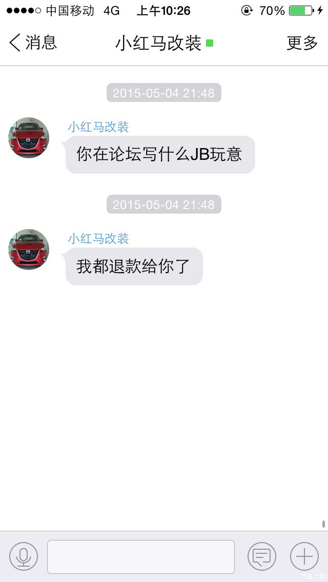 五月五日更新:这货昨天应该在论坛上看到我的帖子了 直接旺旺发信息来质问我 真TM好意思 说钱都退我了 钱都退我运费要我自己掏???没见过卖假货还这么理直气壮的,我懒得理他未回他 此事自始至终我保持克制态度 没跟他多啰嗦 在此衷心感谢广大车友力挺支持 本帖还将继续更新