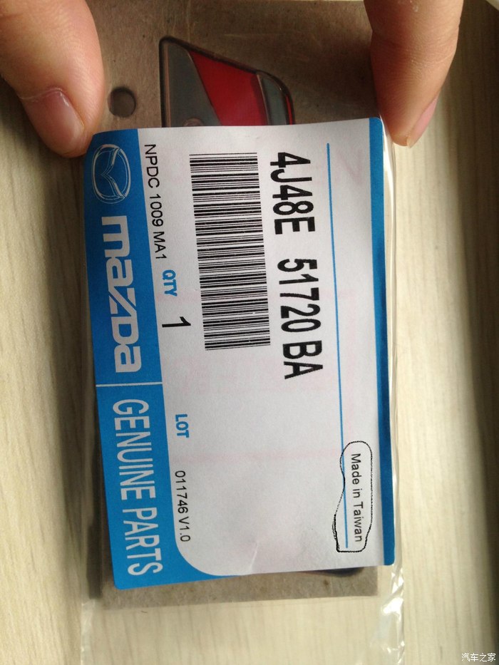 2015 5月6日 重新淘宝真货送到 下面让大家自己看看真货是什么样子的 大家自己对比 相信 车友们会有自己的一个判断!!!先看外包装 比较正规 有马自达标志 表明产地 台湾!made in taiwan !!看我圈出来的地方