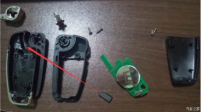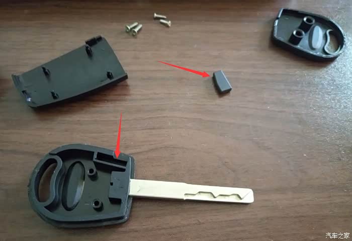 拆掉原来的备用钥匙,取出芯片