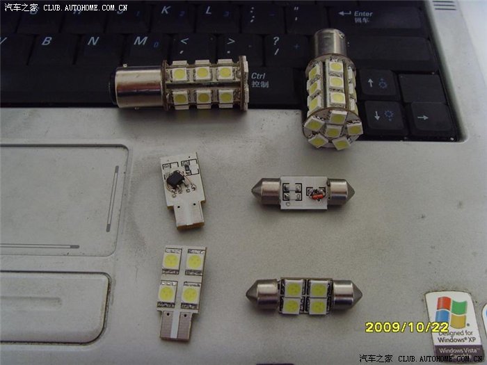 照片里上面我是我定做的刹车灯,中间一排是前阅读灯,单独定做的,没有极性,插上就亮,4个灯珠全朝下,效果要好得多~