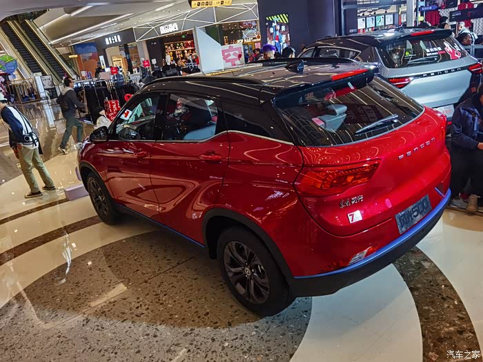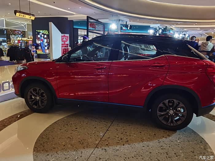 刚走进商场就看到商场中心环岛围了一圈人,还拿个手机在那拍照,本以为是哪位明星驾到,我也赶紧去凑个热闹。一看才知道是一个汽车品牌在开新车上市发布会活动,我看的时候正是劲歌热舞阶段,难怪那么多人拍照。往旁边一瞅,就那么随便的一眼,再也移不开眼,一辆红色的SUV深深的吸引了我。卖了这么多关子,该切入主题了,来,跟我一起欣赏一下这款车,看看有缘看到我这篇帖子的你是否也能跟我一样被这款车吸引。
