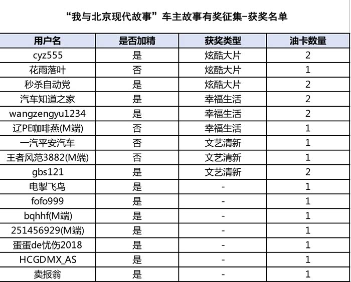 【黑吉辽】“我与北京现代的故事”车主故事有奖征集-获奖名单公布如下: