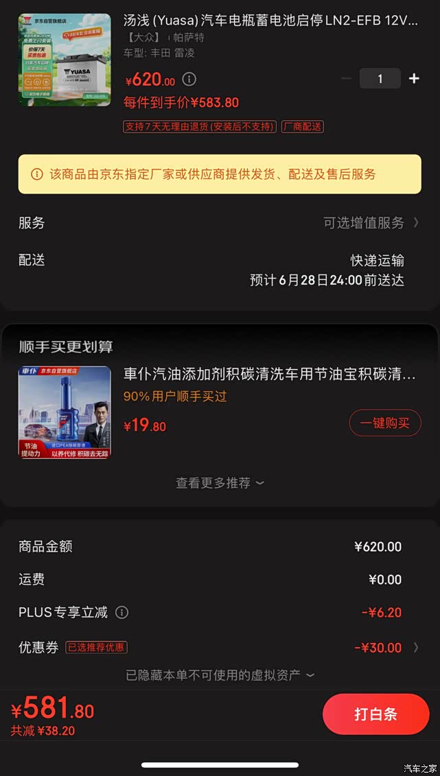 原车出厂电瓶60Ah启停电流600A,用了3年半亏过两次电容量估计剩一半。狗东下单电瓶以旧换新,客服讲不回收旧电瓶要补100多块,原车电瓶应该质量不错留着当个应急启停宝也不错呀。各位298们帮拿下主意:以旧换新亏不亏
