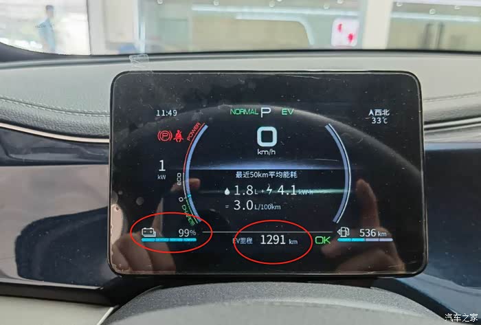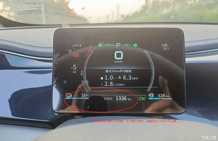 。后面去了售后检查,也试了充电(同样7KW充电桩),同样50分钟充满。后面用EV模式测了下(11点多开始测的,跑到69%的电回家了,下午6点多跑剩下的电)当电量跑到60%以下时,掉电相当厉害,跑5公里不到,电量直接从58%掉到16%。。。。纯电总续航里程大致40公里(没太注意变成HEV的时间,下面有图片)