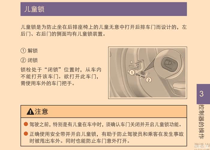 看说明书,童锁只能在后面车门的侧面手动开关,驾驶员不能通过按钮进行开关。这有点麻烦,如果有儿童,开车前必须先把童锁打开;如果没有儿童,开车前先把童锁关闭。老铁们有更好的办法开关童锁吗?