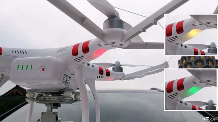 还有四个马达支撑架下面的指示灯也会相应点亮,并呈现红、黄、绿三种颜色交替变换。