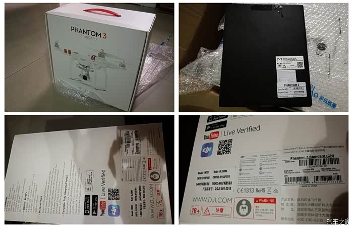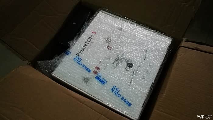 小家伙还没回家,我等不及了,先来拆了!打开厚厚的黄皮纸箱看到了白色箱子装的精灵3无人机本箱,表面还有层减震薄膜,包装还不错哦!