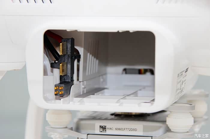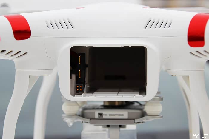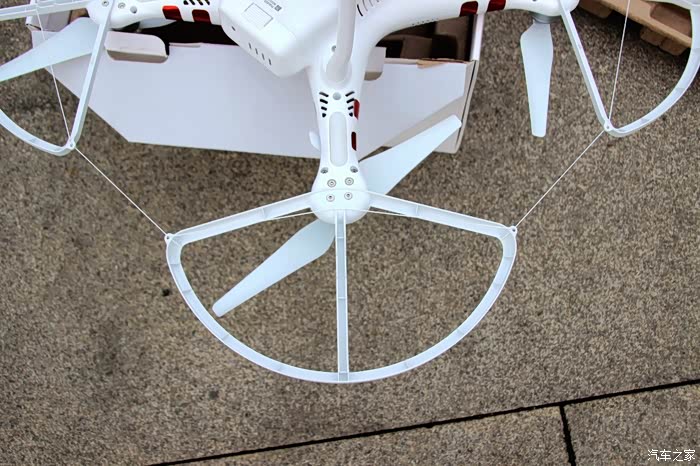 无人机有两根细细的天线巧妙地隐藏于落地支架内侧,不仔细还没发现。