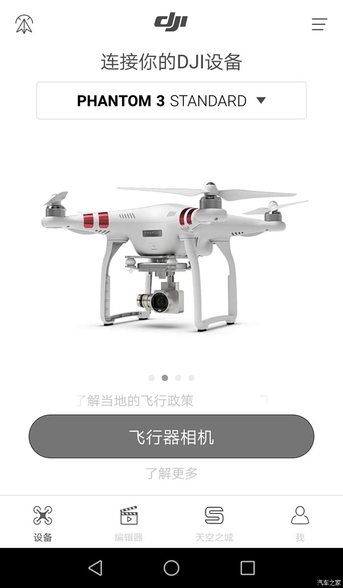 到了广场,我开始装好手机,开启无人机和控制器的电源,关掉手机网络,连上控制台的信号,开启事先下载好的大疆APP,选好精灵3的型号,进入了控制中心界面。小家伙凑上来看得好专注啊!