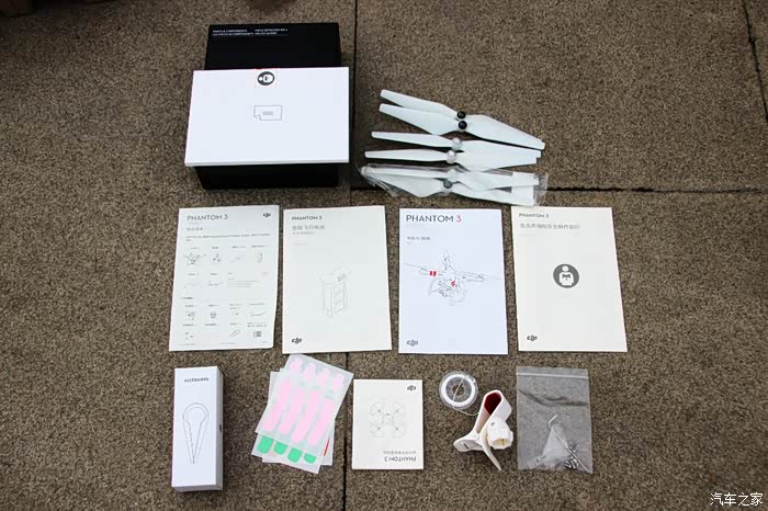 保修卡、说明书、功能介绍卡片、各种颜色的机身贴纸(有橘红、大红、宝蓝、土黄等)、6片桨叶、桨叶保护罩、云台安装专用镊子、手机控制台卡口、一卷白色细绳(固定桨叶保护罩)、配套长短螺丝和内六角小扳手、
