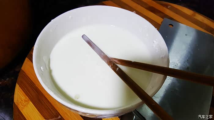 ▲这糊大约在这程度就行了,筷子戳进去,也不滑……我这是面粉和大量的淀粉混合调的