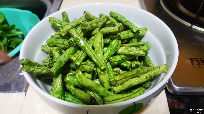 ▲在做锅包肉的时候,顺便也做一个干煸豆角,这回的光线的确很不好