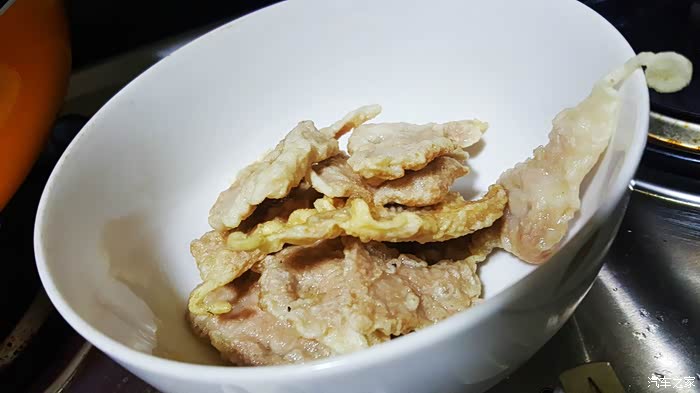 ▲炸出来这样子似乎有些干,很薄的肉,切太厚担心炸不熟