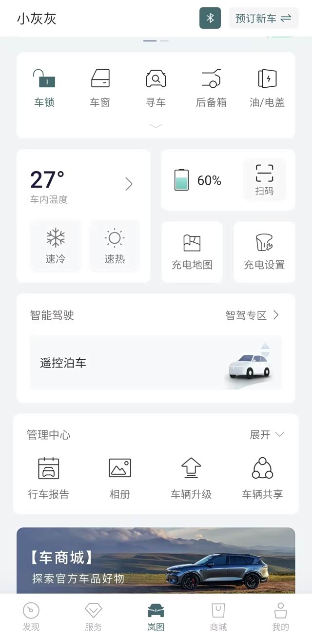 首先打开岚图app,蓝牙钥匙连接上