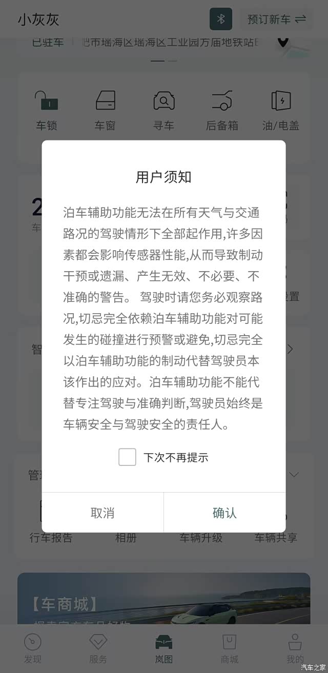 五一前特地跑去店里给车子做了下全车检查,顺便看看车辆底盘异响什么原因,但最重要的还是洗车!出门前一定是干干净净的,单位和岚图瑶海店离的比较近,一进店工作人员也是开始热情招待我了,先是给我登记、然后打印工单。这时我突发奇想让店里给我演示下车辆自动泊出怎么使用的,平时在外面也不敢使用,生怕刮了蹭了,本以为会遭到拒绝,没想到工作人员很爽快的就答应了,指导我在APP上如何操作:
