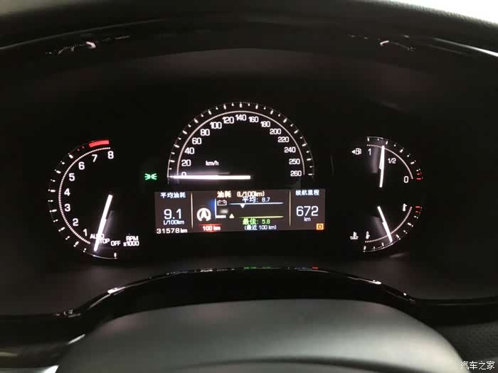 卡迪拉克XT5,邮箱加满,油表指针显示不满