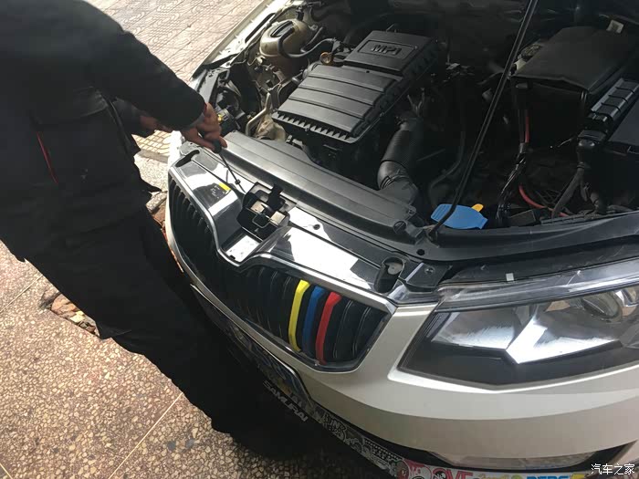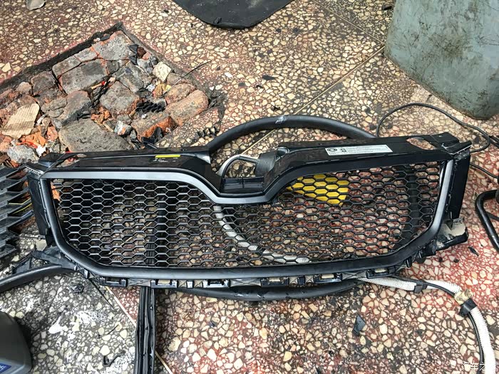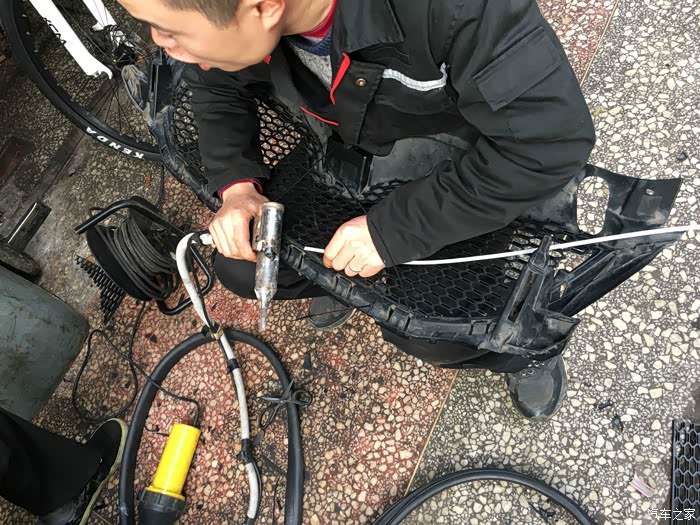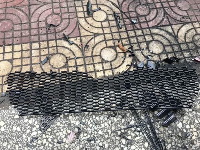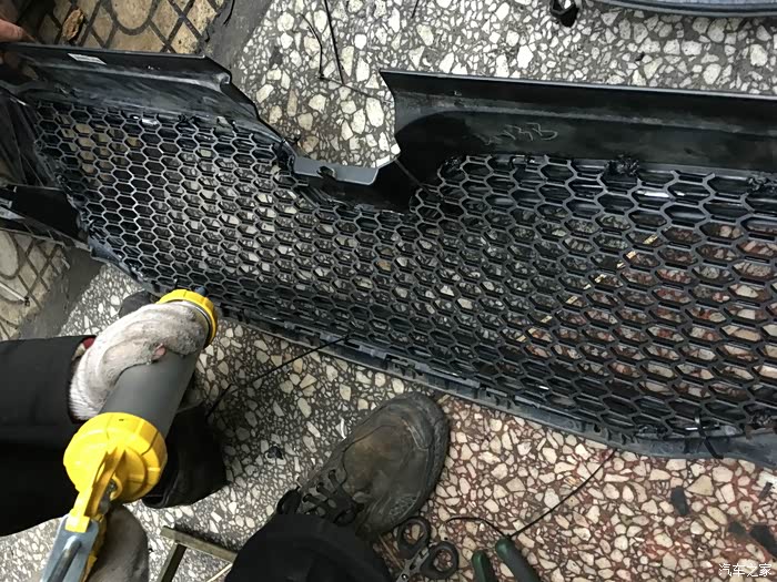 立马网上找材料,蜂窝中网,到货之后马上赶往修理厂拆保险杠,过程是痛苦的,结果是开心的!