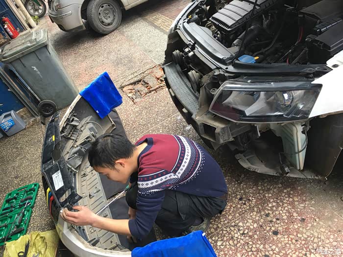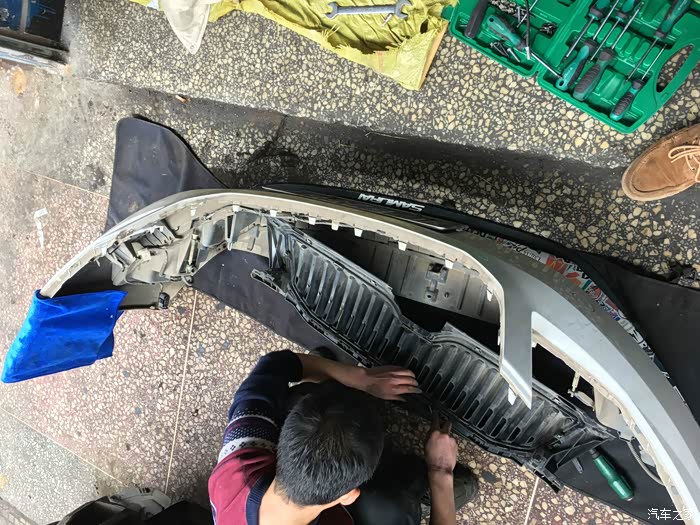 兄弟帮我拆下保险杠,那我自己来切割中网。