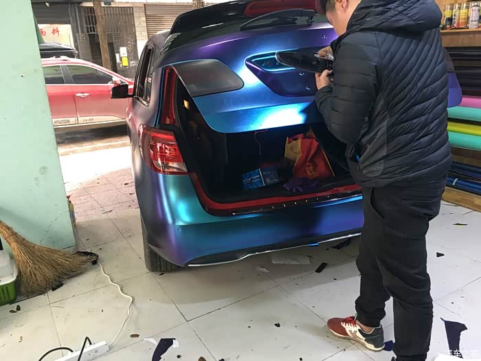 到达贴膜店,正在贴一车很骚很骚的膜。