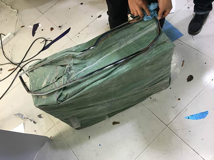 中网切割完之后,我就拿镀铬条去贴膜了,接下来的打磨工作交给了我兄弟。