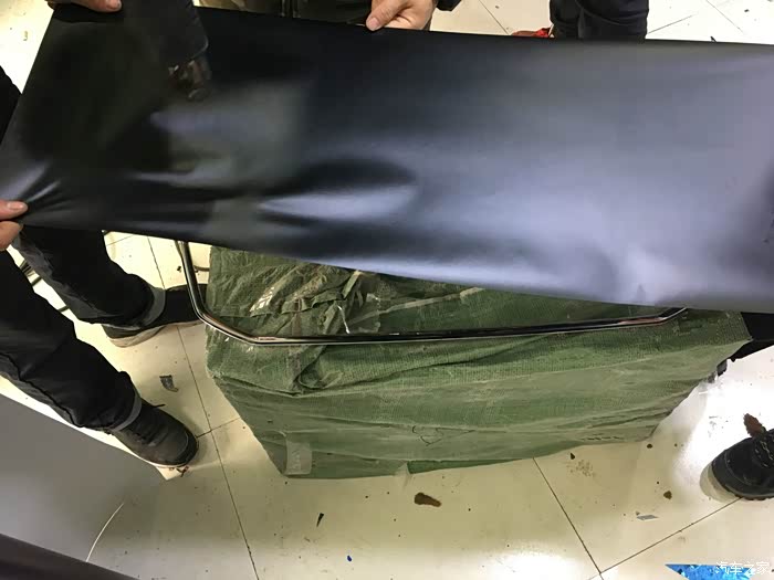 把这个截图发给了贴膜老板,中间的镀铬能不能贴亚光黑。老板回复说,开过去看看。先到修理厂,赶紧拆保险杠。