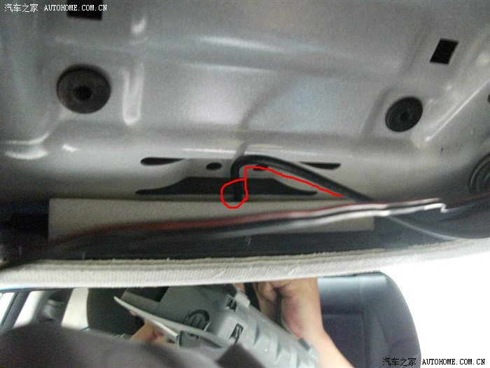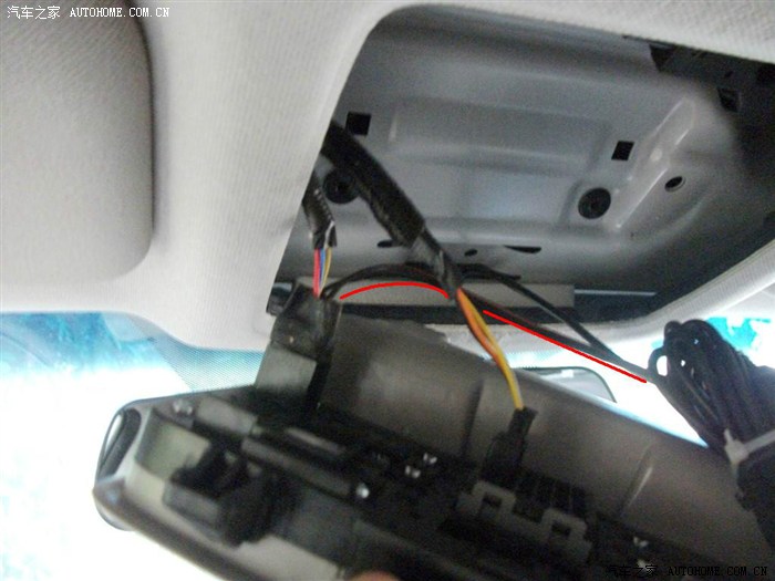 前档上端顶棚处正好有一个缺口,将线从此缺口处引出后与记录仪对插。