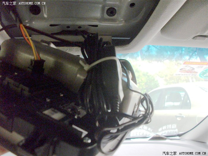 完成了,此时将降压线用扎带捆好后藏入顶棚空隙处,塞紧一些以免将来产生异响,眼镜盒重新装好。