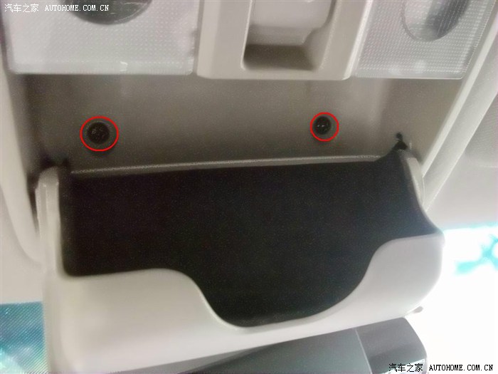 打开眼镜盒可看见里面的两颗螺丝,用螺丝刀拆下来。(不懂怎样打开的同学具体可以参照原车说明书)