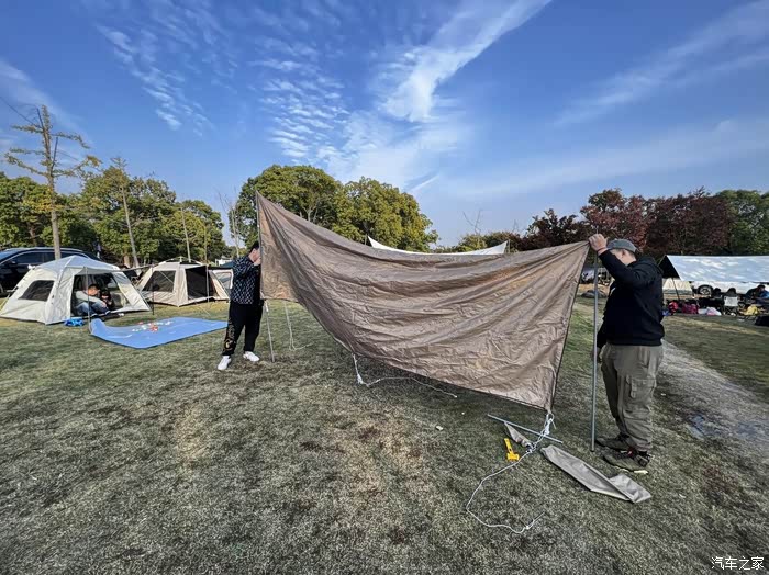 说干就干,扎营这个活还是蛮考验技术的,想我第一次拉天幕笨手笨脚的弄了半个多小时,但是熟能生巧以后十分钟不到就能搞定。