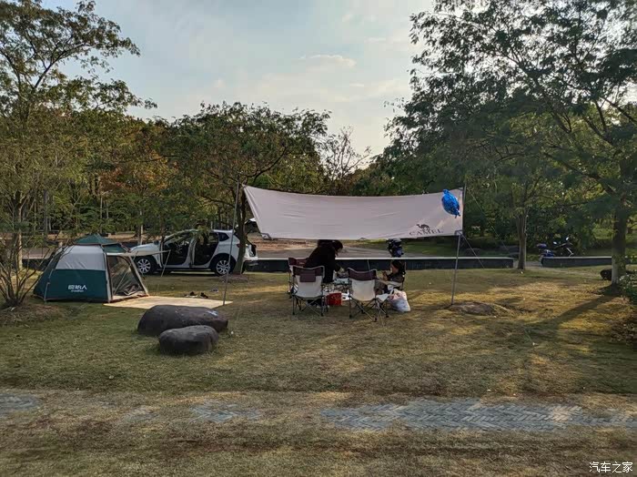 好了,经过一个多小时的行程也到达目的地——美丽的淀山湖风景区。我们选的这个地方还是挺美的,视野够开阔,由于来到有点晚,大家都已经“安营扎寨”了。这里不得不赞美一下R7的通过性挺不错的,以前总觉得R7造型低趴,底盘会很低,但实际上车是直接开上路肩的,马路牙子也可以轻松跨越,像我以前的轿车肯定是不行的。
