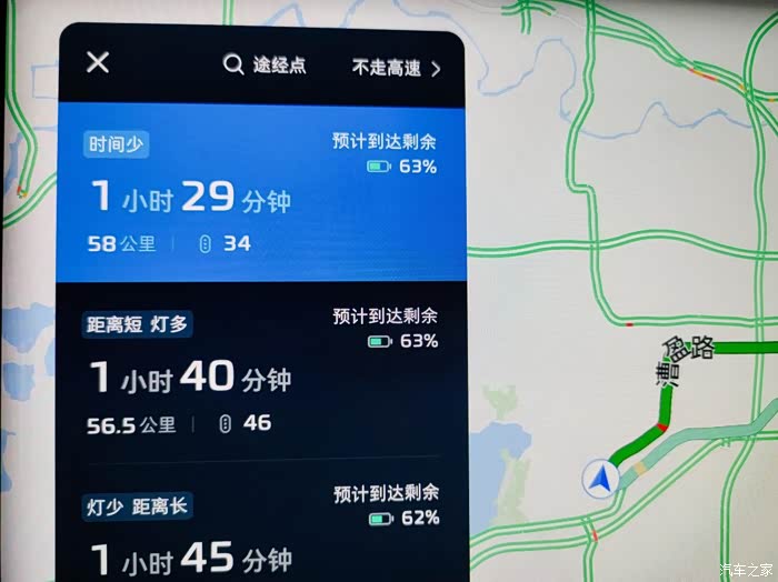 结束了一天的身心放松,终于要打道回府了,这时我才发现R7的导航还有预估电量的功能,看来差不多60公里左右耗电就是耗电10%,这么算的话续航达成率还挺高的。