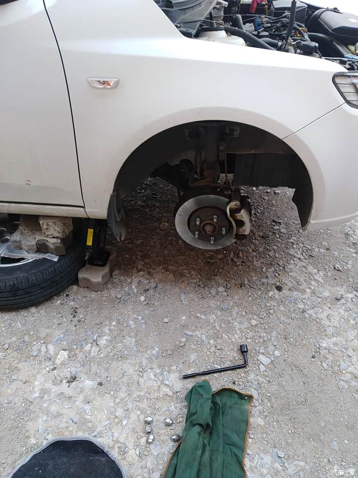 把车左右架起来,右边轮胎拆下,再把里面护板拆下