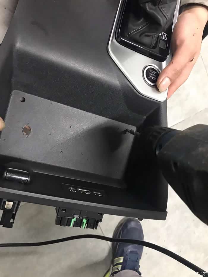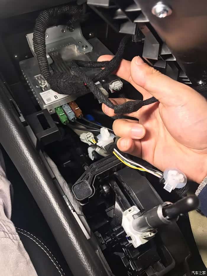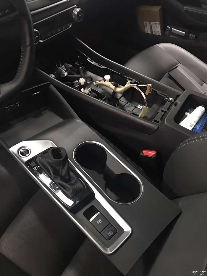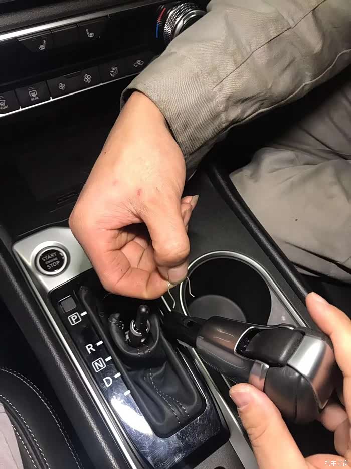装这个无线充电器,第一步就把这个档位杆拆下来,一个小卡子拆掉,然后向上拔出就可以,非常好拆。