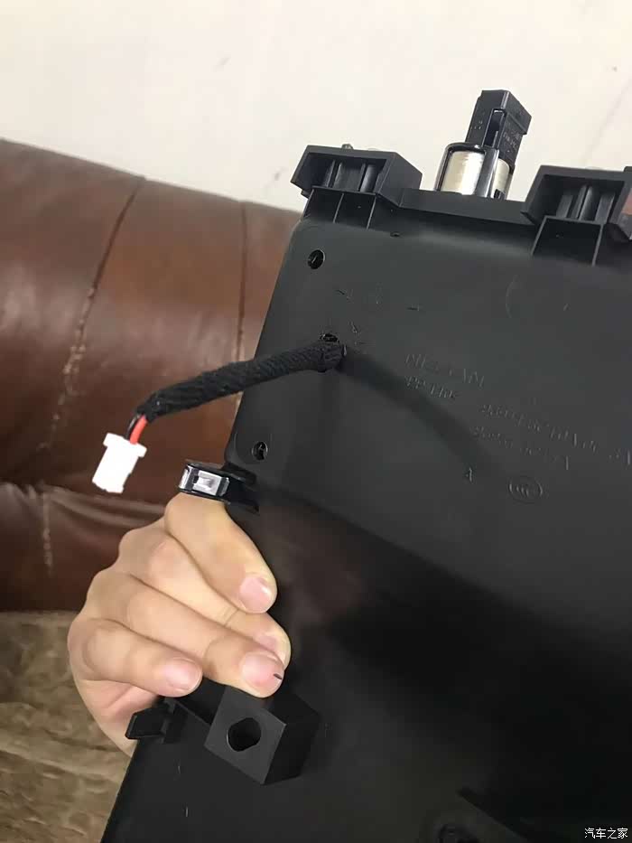 要把原车的雷达控制模块换掉,因为原车的只支持后四雷达。现在换了一个支持前后8雷达的控制器。这里做了一个转换对接插头,一头公的,一头母的。一头线束插头插原车线束,一头插雷达控制单元。这都是一些细节,细节决定这个活干 的好坏。