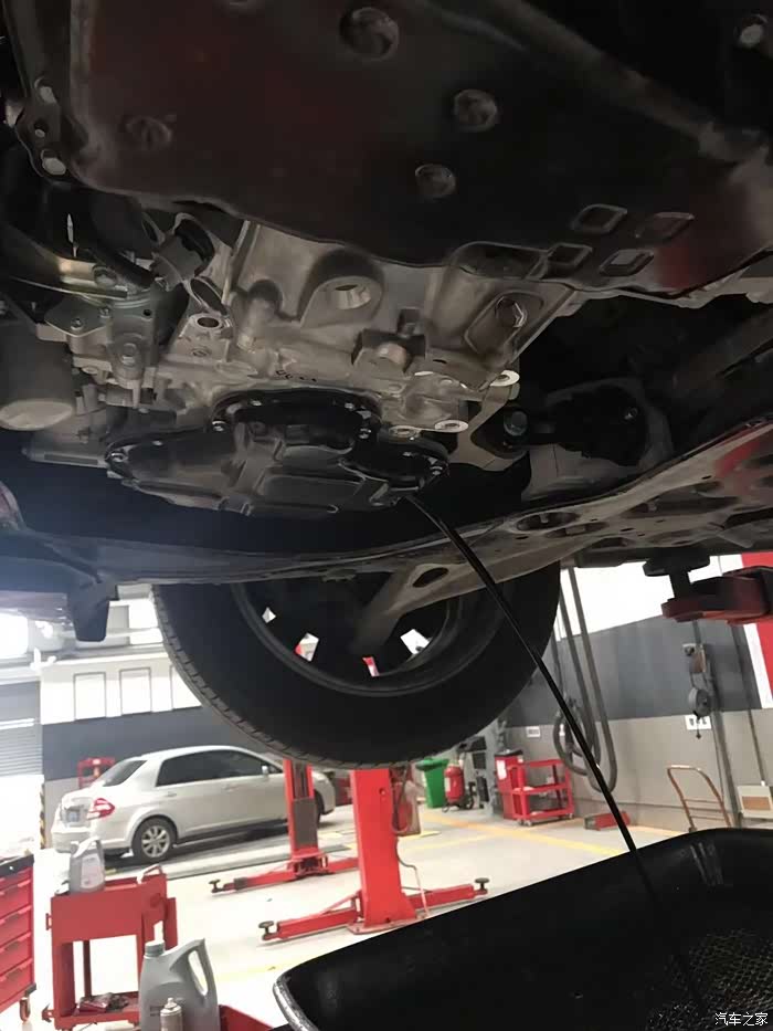 拆除发动机下护板,准备放油