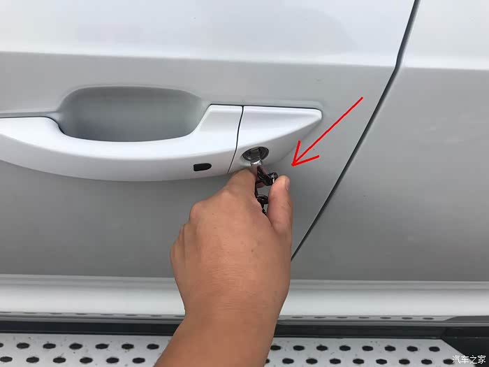 只需将钥匙***锁眼中,向下扭动,车门就可以正常打开了~!