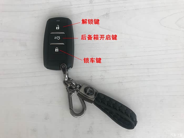 这是钥匙的正面,只有简单的三个操作按键,分别是解锁键,后备箱开启键,锁车键。