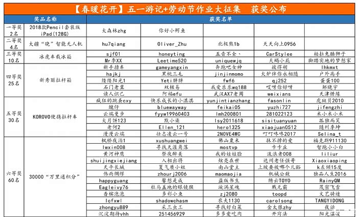 【获奖公布】五一游记+劳动节作业大征集,2018新款iPad等你拿!