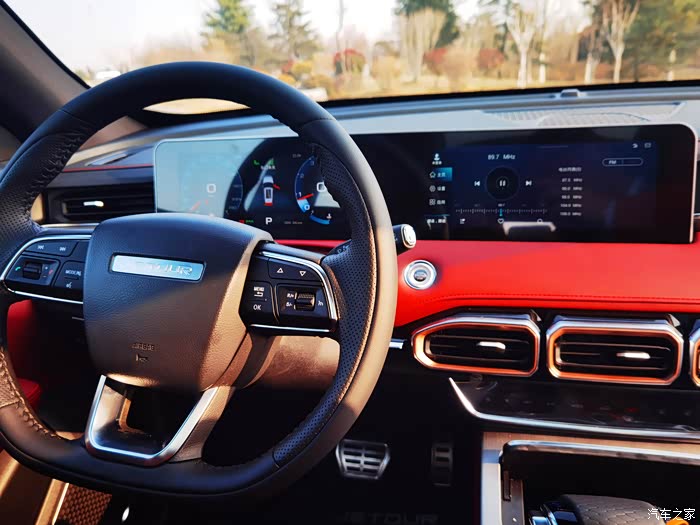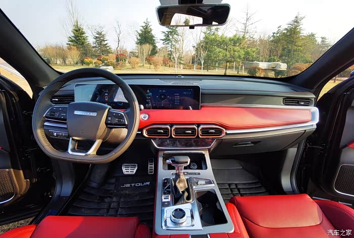 老婆非常喜欢红色的内饰,觉得很漂亮,它用了一体式的大屏,里面的功能很丰富,之前就了解到这车在科技化方面的配围起很全面,如今一试,果然如此,导航、音乐、空调等等功能不用手,直接语音命令就可以了,很快就能做出回应。