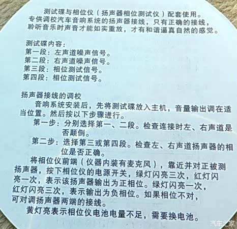 我的车是海景14款精英版。原车当时只有4个喇叭(2个前门6.5寸喇叭和2个后台喇叭,没有高音),当时也没做相位测定,就是用万用表进行测量和功放端和分频器都严格相位接线。后来陆续进行了不断的改装,现在是前门三分频系统,DSP延时主动控制,加上后门的单元,一共是了15个喇叭,双功放单路低音系统,那么,这么多的喇叭系统,相位的正确就非常重要了。有车友会问,什么是相位?单独一个喇叭是不分相位的,但是当同一个音响环境里有多个喇叭发声的时候,相位(通俗的说:正负极的接法)就相当重要了。当你正负极正接的时候喇叭音盆是向外突出,而你反接的时候音盆是向内吸进,所以当相位不统一的情况下会产生喇叭发声不同步,导致音质不清晰、低音会被抵消或者减弱。而通过使用相位检测仪可以非常方便和准确地检测所有的喇叭正负极是否统一,让声音同步。也就是说你全部正接也对、全部反接也对、关键是所有的喇叭相位要一致。今天没事测试了下 ,结果是全部正相,所以很多朋友说我车的效果好,这个相位正确的基础很重要。不过,只要同一套喇叭都是正向或都是反向就行,不必都是正向,大多数音箱都是正向,少数都是反向的。推荐自己改了音响的买个测,省这点钱真接错了那声音效果可是打了对折呀!