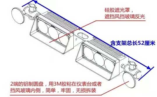 *3款不同长度的遮光罩,遮挡玻璃反光,几乎所有的车都可安装