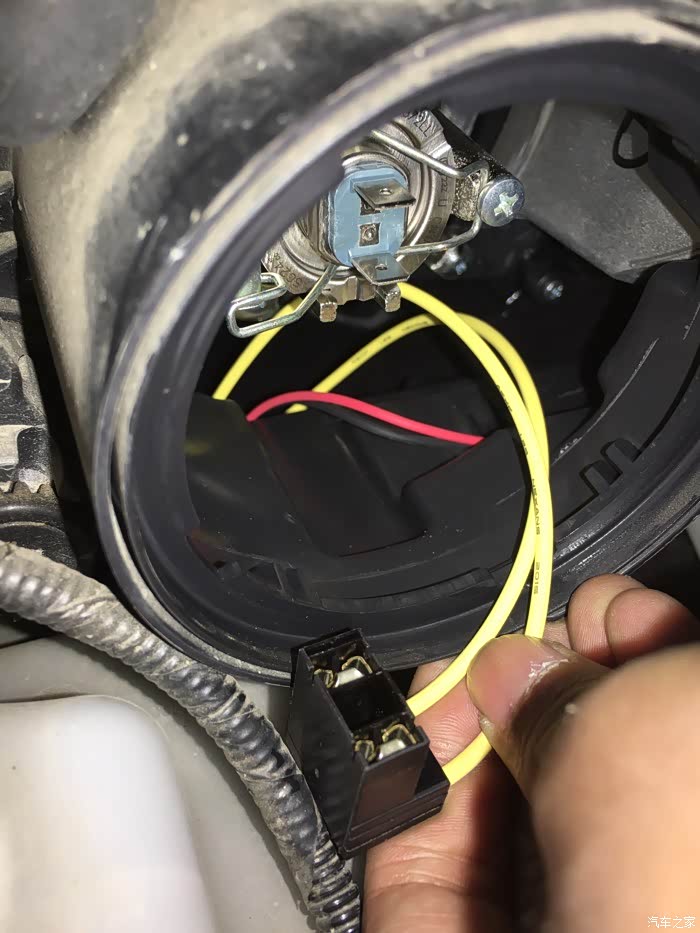 接下来插电源,别管正负极,直接插,不存在有正负极一说,个别车灯不同,请不要一视同仁,安装前最好问下卖家。